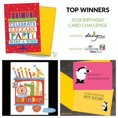 And then the art licensing group that I am honored to lead, ran a Birthday Greeting Card Art Challenge with DESIGN DESIGN® this summer and just found out that my card was top 6 challenge winner! (Check out some of the stellar designs below, I am honored to be in this grouping of talented artists.)