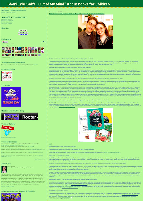 My husband, Benjamin Hummel and I were honored to be the first illustrator team to be interviewed by Shari Lyle-Soffe for her “Out of My Mind” About Books for Children blog. Find out: what made us start doing this in the first place how we work as a team to create illustrations for children’s books…